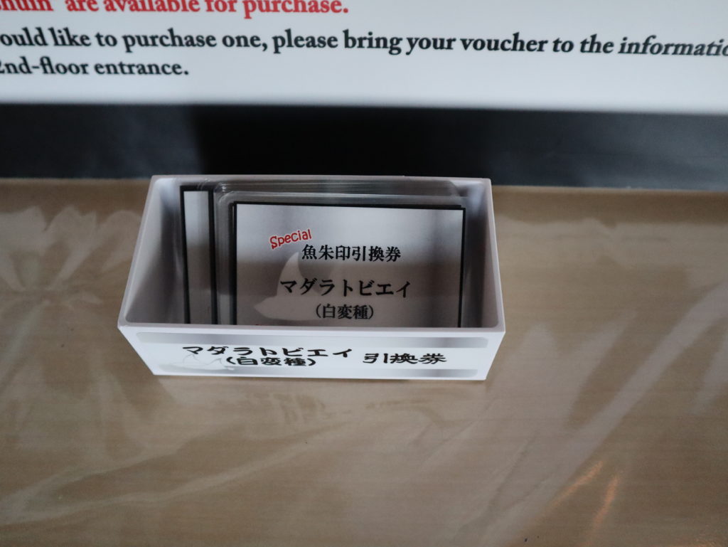 ご購入の際は、2Fエントランスに設置してある引換券をお手に取り…。