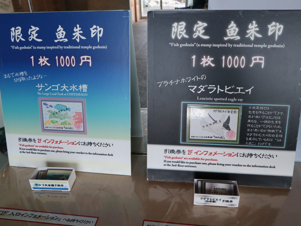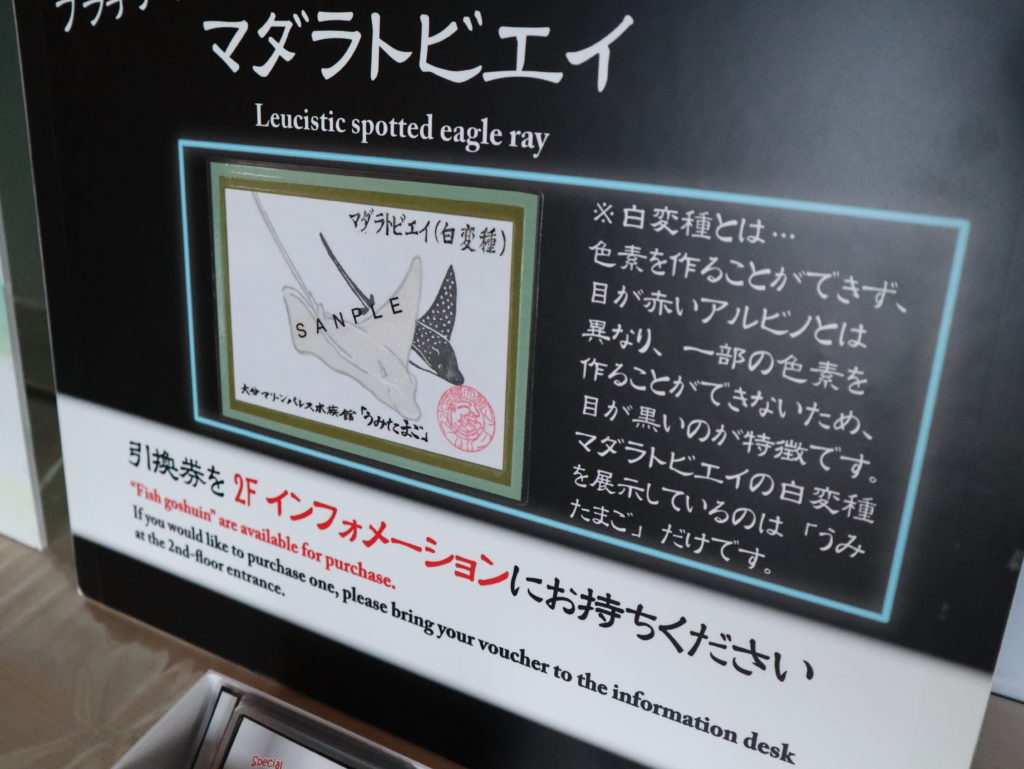 先日より公開開始となったマダラトビエイ(白変種)とサンゴ大水槽の風景を切り取った特別な魚朱印を販売いたします。